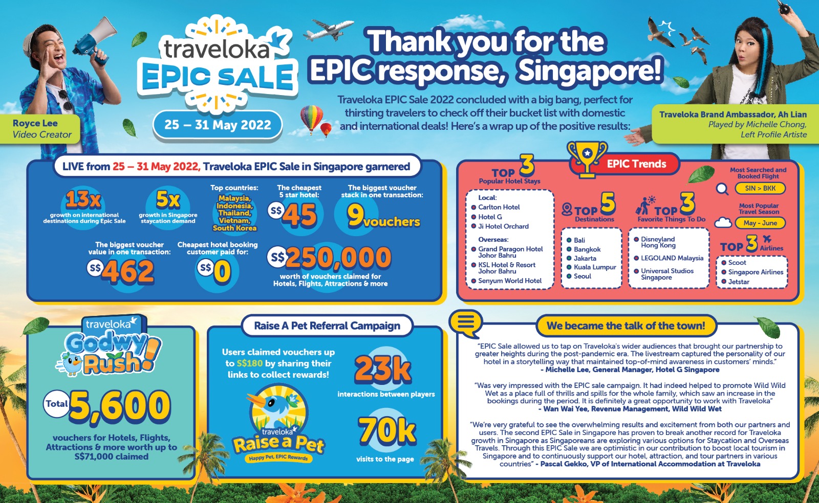 “We’re very grateful to see the overwhelming results and excitement from both our partners and users. The second EPIC SALE in Singapore has proven to break another record for Traveloka’s growth, as Singaporeans are exploring various options for staycations and overseas travel,” said Pascal Gekko, Vice President of International Accomodation at Traveloka. “Through this EPIC SALE, we are optimistic in our contribution to boost local tourism in Singapore, and to continuously support our hotel, attraction, and tour partners in various countries,” he added.