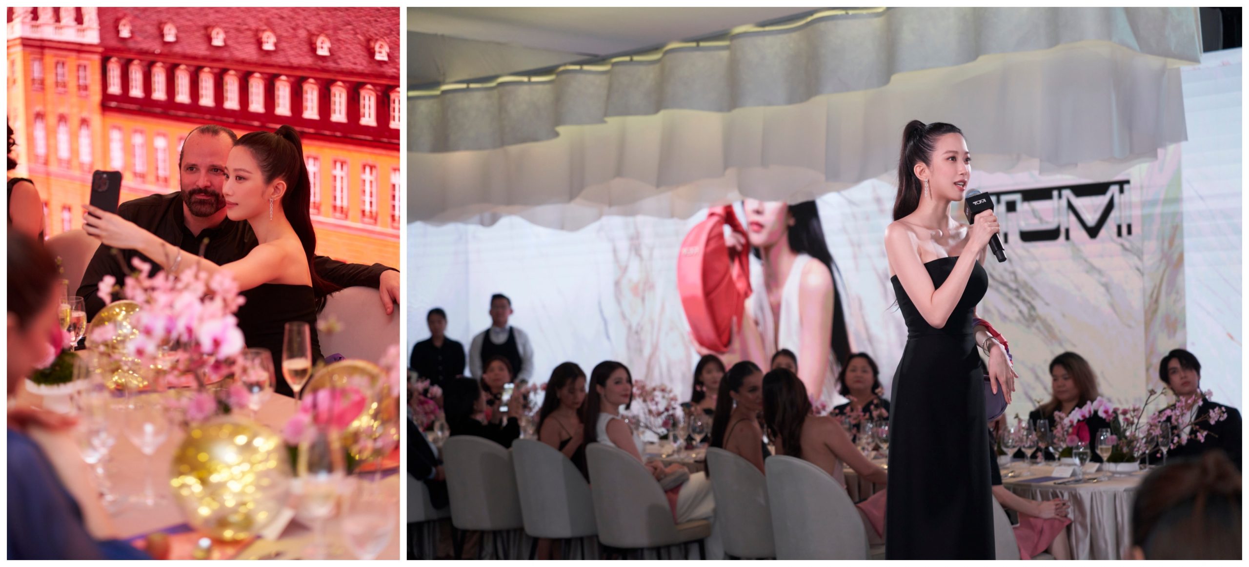 The “Discovering Asra” evening unfolded through a series of surprises, taking guests on an intimate journey to discover the modern allure of Asra. The experience began with a sunset cruise aboard two luxurious TUMI-branded yachts that brought guests to Sentosa. Upon arrival, guests were whisked away to the VIP dinner venue located at Sentosa Golf Club. The venue, which had been transformed into the elegant “Sentosa Pavilion,” celebrated the effortlessly style embodied by Mun and the design language and colors of Asra, including the vibrant Purple Sunset colorway inspired by the beautiful landscapes of Sentosa Island.