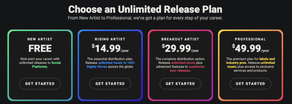 TuneCores new Unlimited program includes four plans catered to give options and choice to meet the unique needs of all artists: