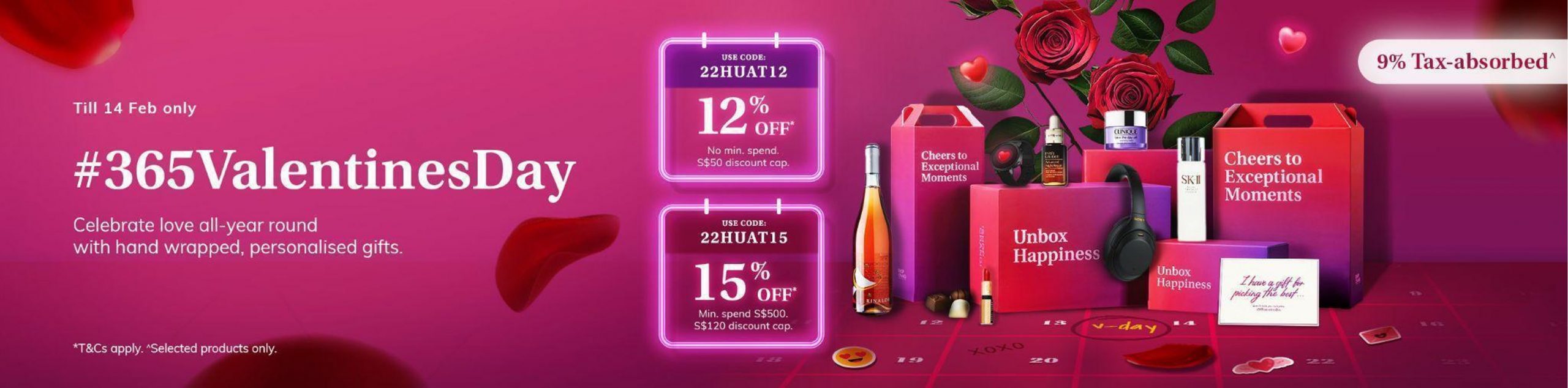 | 365VDAY12 | 12% off* min. spend S$450, capped at S$75 |