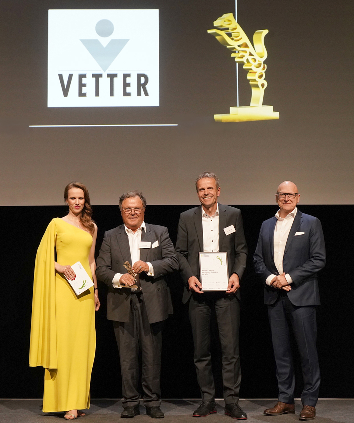 In close partnerships with its global customer base, Vetters intent as a solution provider is to provide patients around the world with flawless, high-quality medications to treat a wide range of severe diseases. By applying innovative, multidimensional programs, the company strives to operate in a sustainable manner, giving equal weight to environmental aspects as well as social and economic considerations. Further company highlights that contributed to sealing the winning of this years award were the timely receipt of the manufacturing authorization for its clinical production facility in Rankweil, Austria, combined with the start of the companys new strategic program Vetter NExT 2029.