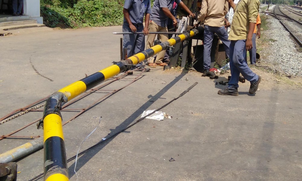 After Killing his��Mahout the violent elephant turned against Ollur Railway gate.