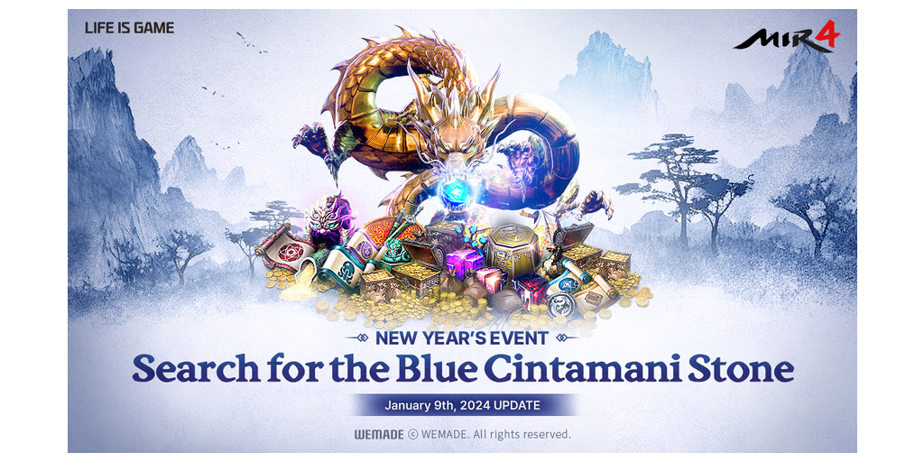 SEOUL, South Korea–(BUSINESS WIRE)–#BlueDragon–Wemade’s blockbuster MMORPG MIR4 starts its New Year’s Event “Search for the Blue Cintamani Stone” on January 9.